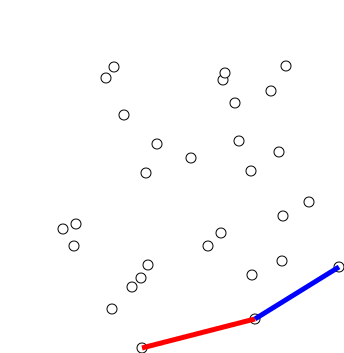- the green dots are random points and the blue line is the "convex hull" of the points