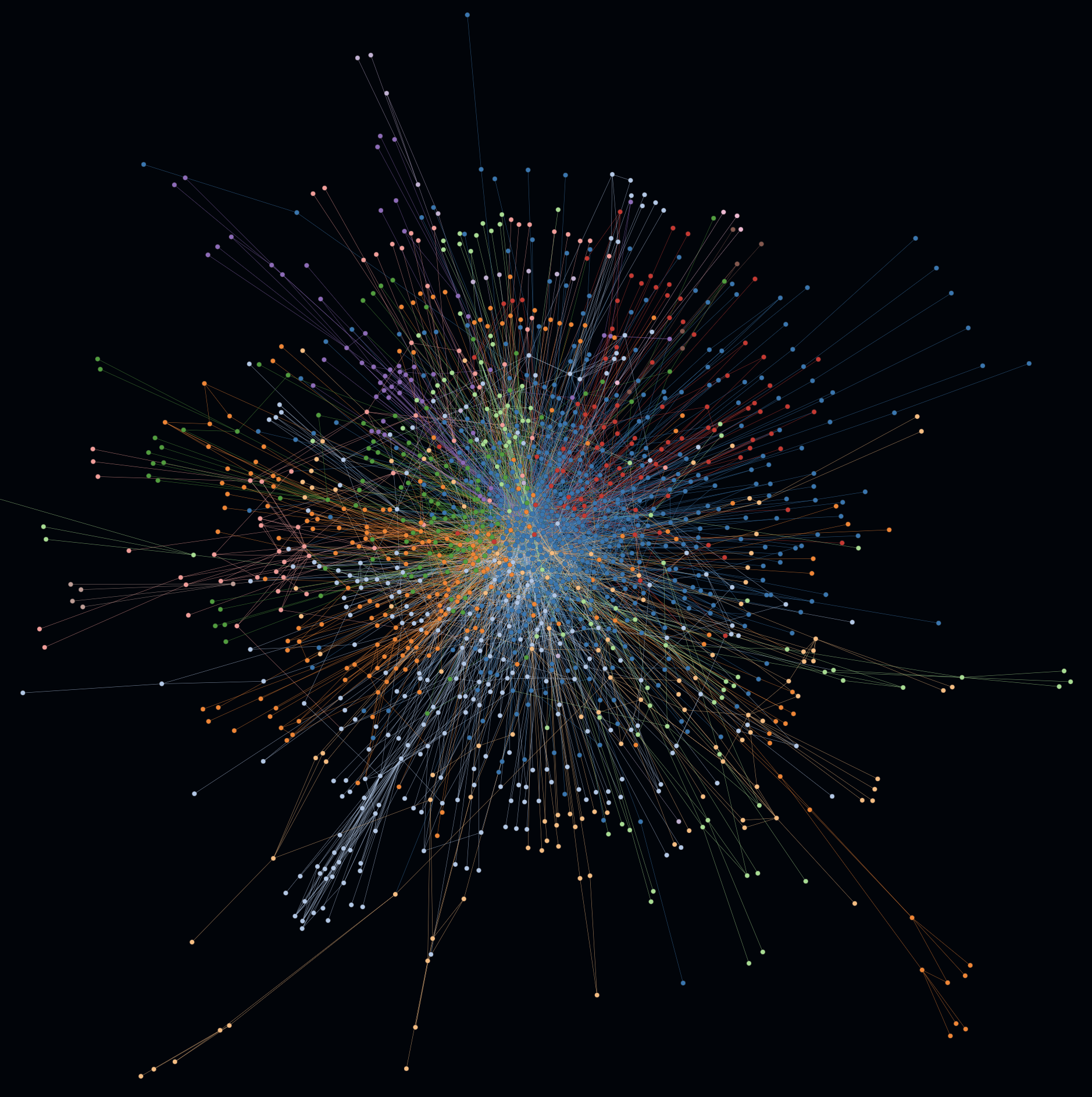 - The node colors are based on Louvain modularity with a bit of post-processing to make the graph coloring more deterministic and stable