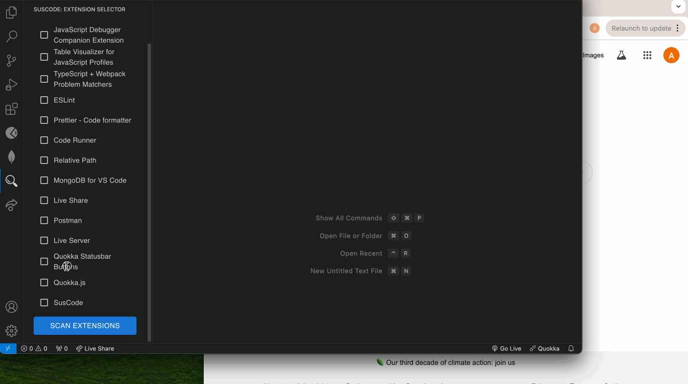 SusCode is a VS Code extension built to help users take the security of their extensions into their own hands. SusCode counteracts both the lack of an extensive permissions protocol and the low threshold for extension security in Microsoft’s Visual Studio Marketplace by searching through your already downloaded extensions and making you aware of patterns, packages, and requests that could increase an extension’s vulnerability to malicious attacks or an extension's own potential malicious activity. SusCode stands out as the first application meeting this need within the VS Code community.