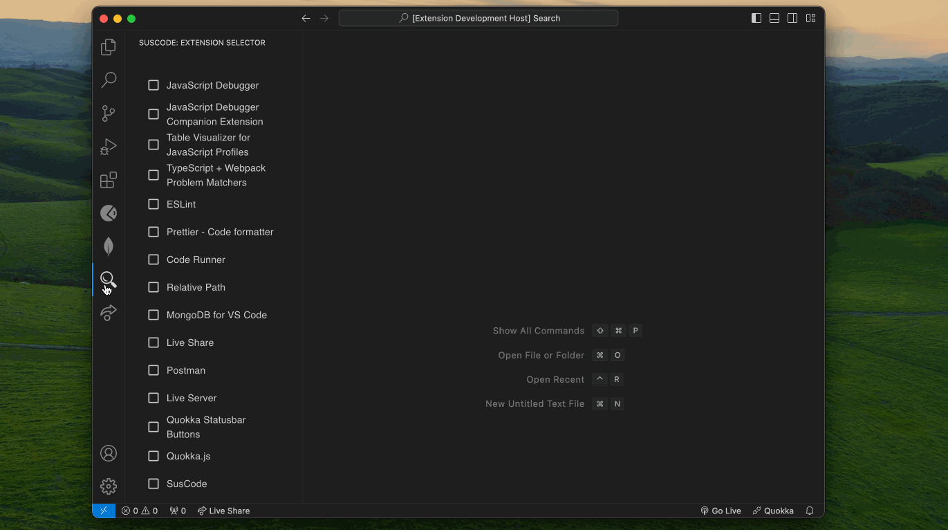 SusCode will appear as a magnifying glass icon in your activity bar: