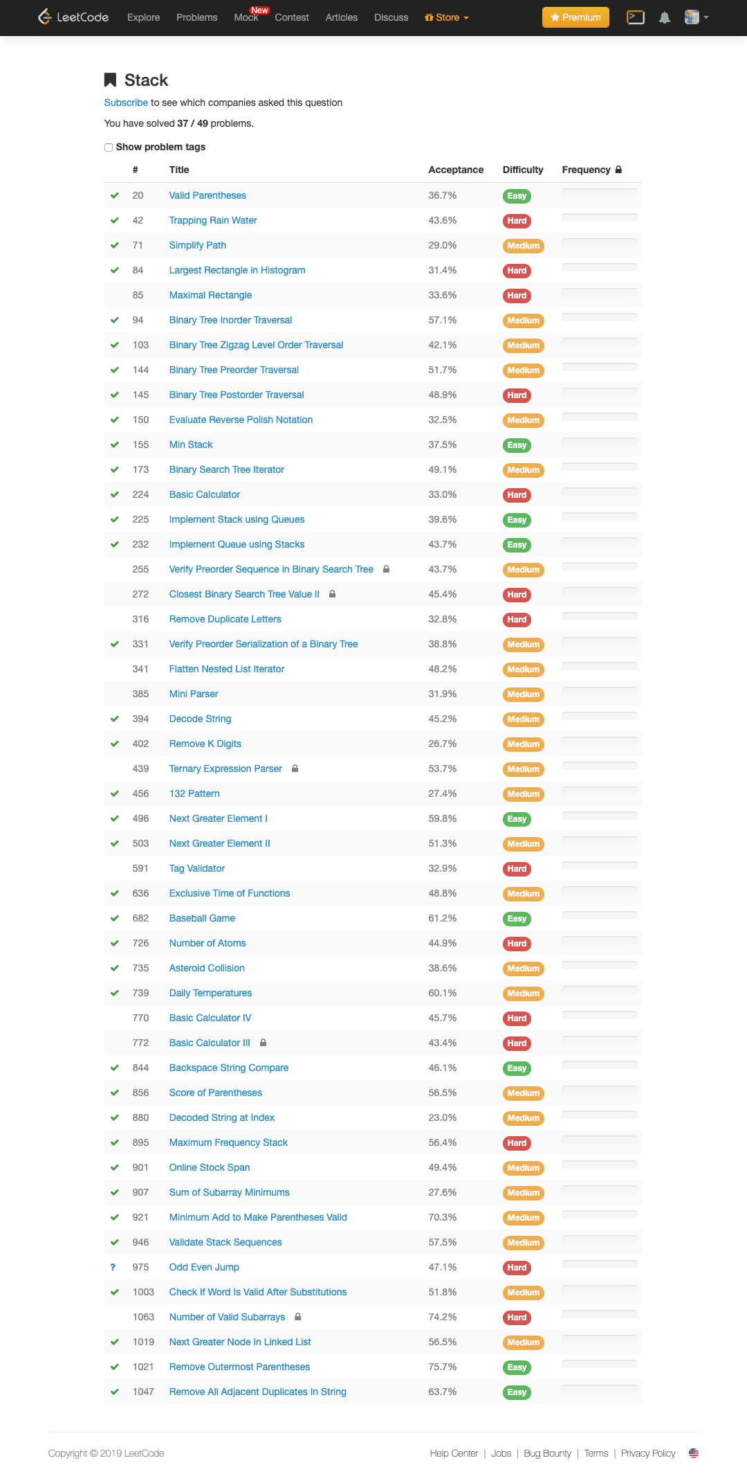 | 0020 | Valid Parentheses | Go | 38.9% | Easy | |