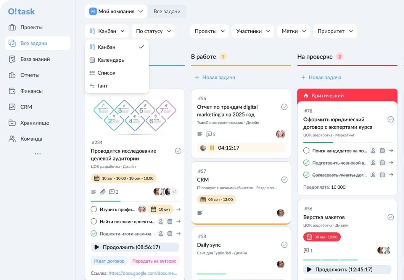11. O!task — система управления проектами с CRM и финансовым учётом