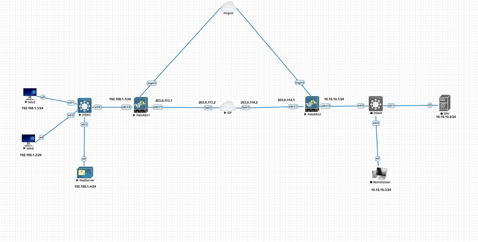 Сегодня у нас другой случай. Будем настраивать его между Palo Alto и Cisco. Вот наша топология.