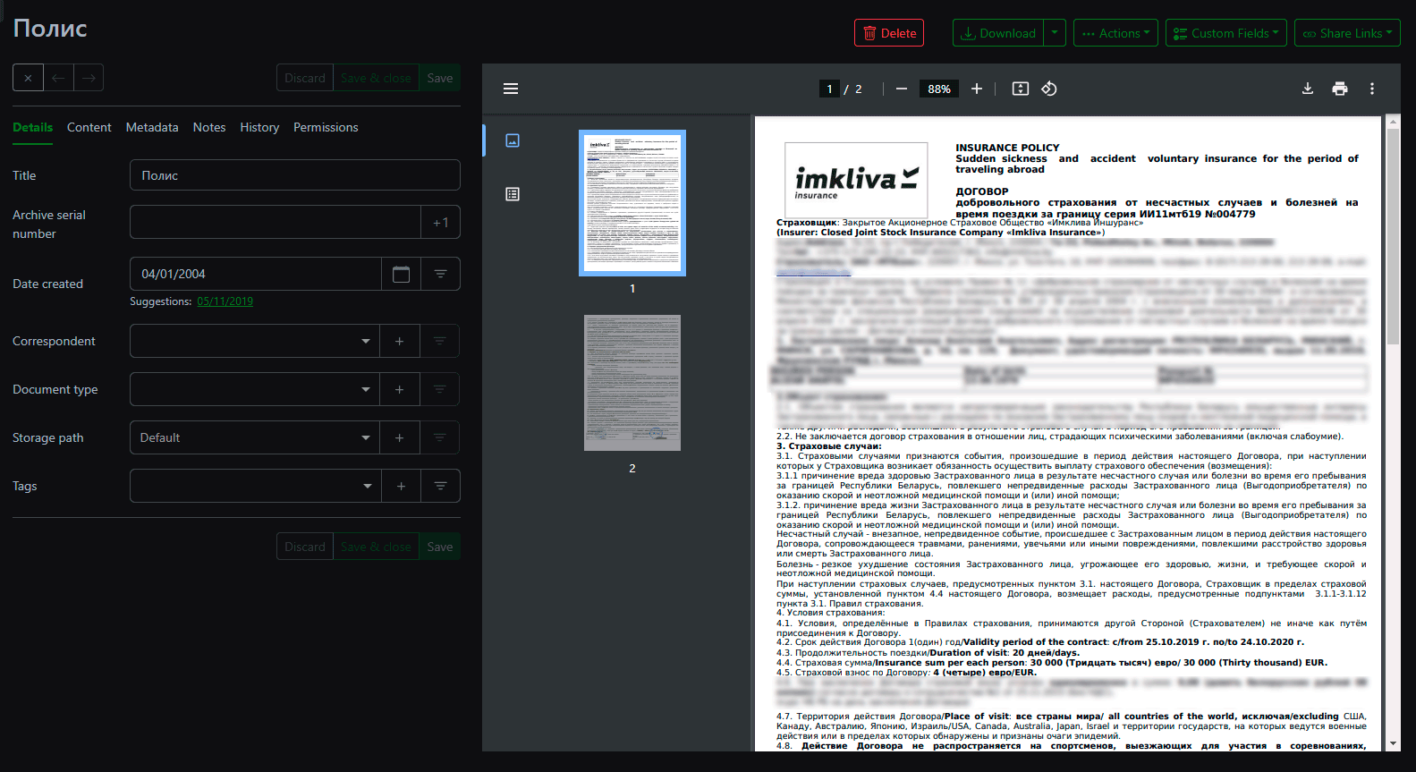 Опенсорсная программа Paperless-ngx позиционируется как оптимальное решение для создания цифрового архива. Со встроенной системой распознавание символов (OCR) и обучением на основе ранее отсканированных документов она создаёт хранилище с поиском, где можно быстро найти любой документ. Всем документам присваиваются теги, так что они могут присутствовать в разных тематических категориях, это удобнее распределения по папкам.