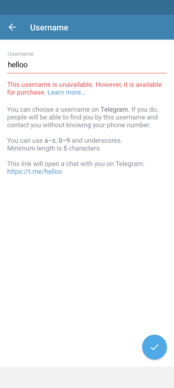 This username is unavailable. However, it is available for purchase. [Learn more…](%1$s)