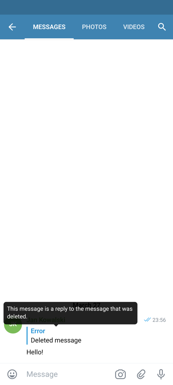 This message is a reply to the message that was deleted.