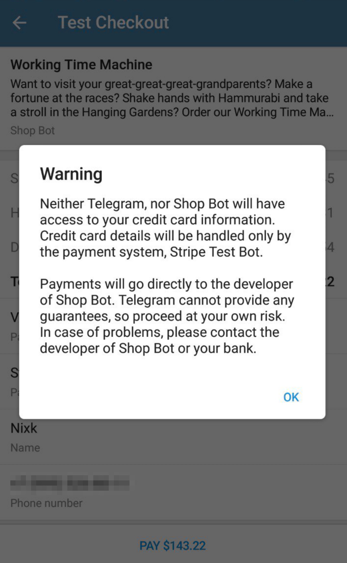 Payments will go directly to the developer of %1$s. Telegram cannot provide any guarantees, so proceed at your own risk. In case of problems, please contact the developer of %1$s or your bank.