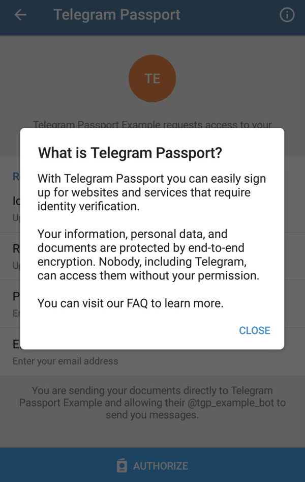 With Telegram Passport you can easily sign up for websites and services that require identity verification.