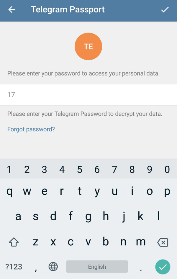 Enter your Telegram Password to decrypt your data.