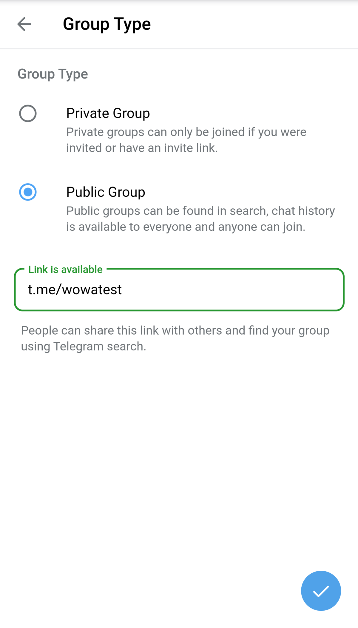 People can share this link with others and find your group using Telegram search.