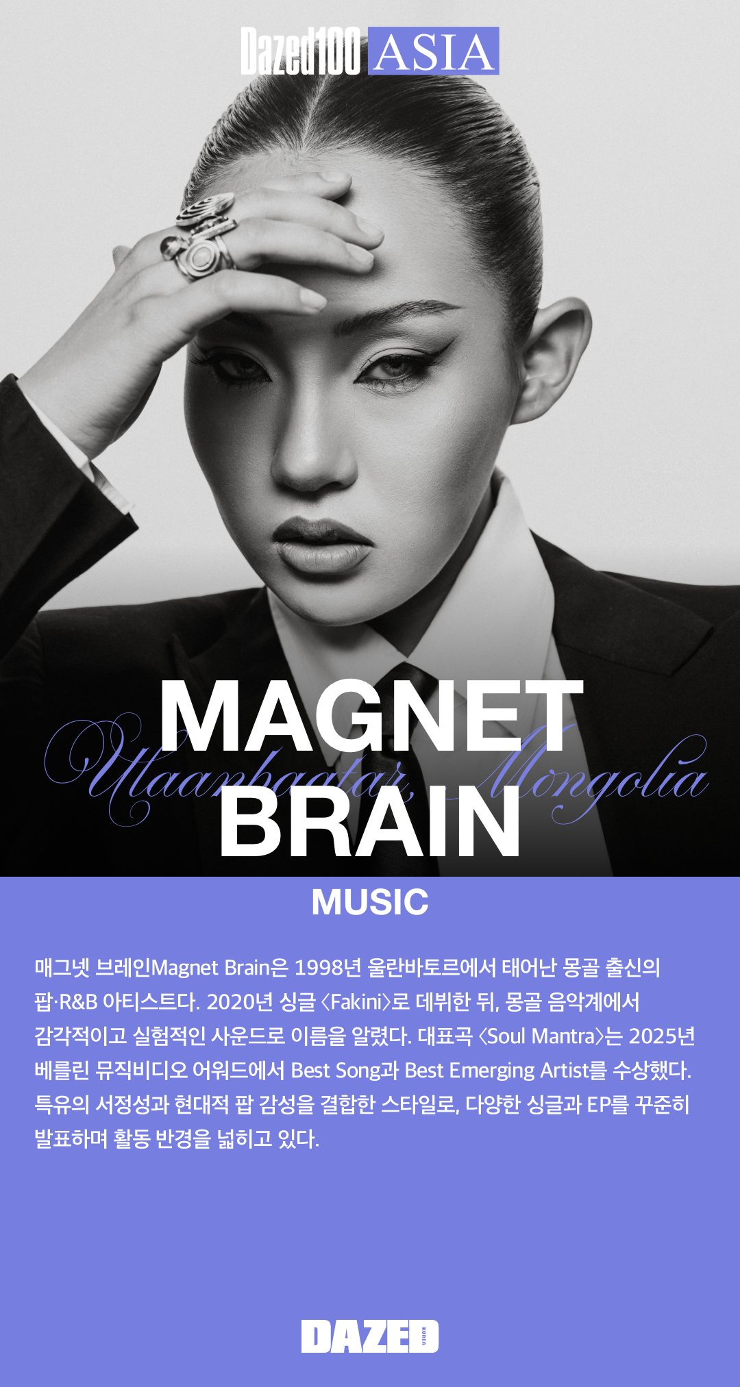 Dazed 100의 열 번째 챕터. 글로벌 리스트와 미국, 중동에 이어, 마지막으로 Asia 100을 공개한다. NEWS #Dazed100은 ‘유스 컬처’의 중심에서 지금을 바꾸고 있는 얼굴 100인을 기록해온 프로젝트다. 2025/12/12 Text DAZED KOREA