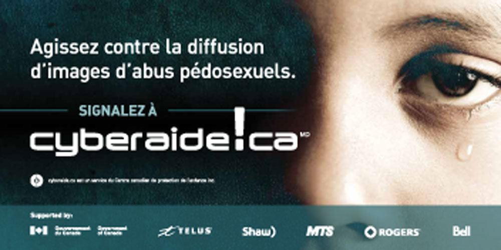 Cette campagne encourage les Canadiens à signaler à Cyberaide.ca les cas de trafic d’enfants et d’exploitation sexuelle d’enfants à des fins commerciales sur Internet.