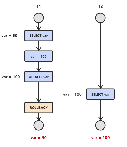T1 修改一个数据,T2 随后读取这个数据。如果 T1 撤销了这次修改,那么 T2 读取的数据是脏数据。