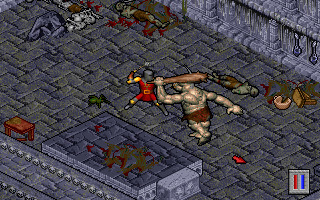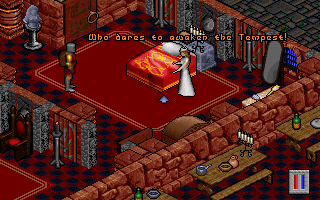 Можно пропустить и то, что фирменная тканая карта мира не соответствует фактической (если я правильно понимаю, то это единственный случай во всей серии). Вырезана целая область, посвящённая одной из стихий и с ней вырезана целая ветвь магии, описанная в мануале! Можно сделать вид, что мир не ограничен дюжиной недоинтерактивных локаций, а самая обширная территория не представляет собой те самые монохромные катакомбы. Терпимо, да, игрок и не такое сносил, — но запорота даже такая элементарная штука, как воровство! Можно находить спрятанные ключи и вскрывать замки, можно залезать в запертые дома через крышу, можно потайными переключателями открывать (но не обчищать) секретные нычки даже в присутствии хозяев дома, — проблема в другом: бессмысленно. Что красть? Оружие, которого и так избыток? Зелья лечения? Свитки поиска ловушек? Подушки и бритвенные принадлежности? А если вам этого мало, замеченная кража, как и любое нападение на граждан города, карается здесь одинаково — телепортом мага огня, который одним файерболом эффектно разрывает вас на кусочки. И не стоит надеяться, что, возглавив ковен огнепоклонников, вы сможете ему хотя бы ответить. Нет, преступлений много, а катсцена всего одна.