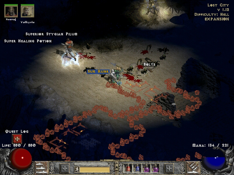Когда‑то давно я начал с патча 1.09 и играл за некроманта со скелетами. К сожалению уже во втором акте игра выглядела так: некро таскает двуручный меч и медленно тюкает кошаков по голове, на что те огрызаются жалобным мявом. «Мя‑у — Мяф!», следующий. Когда же вышел 1.10 скелеты окрутели настолько, что такой же некромант играл, постепенно повышая параметр /players и не испытывал проблем, пока не упал от внезапного взрыва босса, но это был софткор ещё, именно тогда я понял, что хардкор интереснее, хотя бы есть смысл не помирать. Проще говоря, для меня Diablo 2 — нестареющая классика, «таких больше не делают» и ещё много хвалебных эпитетов, плюс бочка непройденных челленджей (/players 8 плюс «убить всех» убился в stair trap'e в могилах Тал‑Раши, прогрызя только половину из стоявших там скелетов, мумий, мумий, ещё мумий и привидений, общим числом за сотню на одном маленьком пятачке, но перед этим убил минимум три «неубиваемых» монстра, потратив на каждого не менее получаса), плюс такая игра, где я достаточно «крут», чтобы успокаиваться от игрового процесса и не сильно расстраиваться, даже когда персонаж внезапно умирает, что случалось достаточно часто, чтобы не помнить всех, но было болезненно, чтобы не забывать никого.