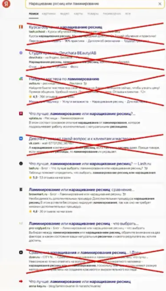 Я выбрал тему "Наращивание или ламинирование ресниц: что выбрать?" — частотность хорошая, запрос популярный, а конкуренция не убийственная.