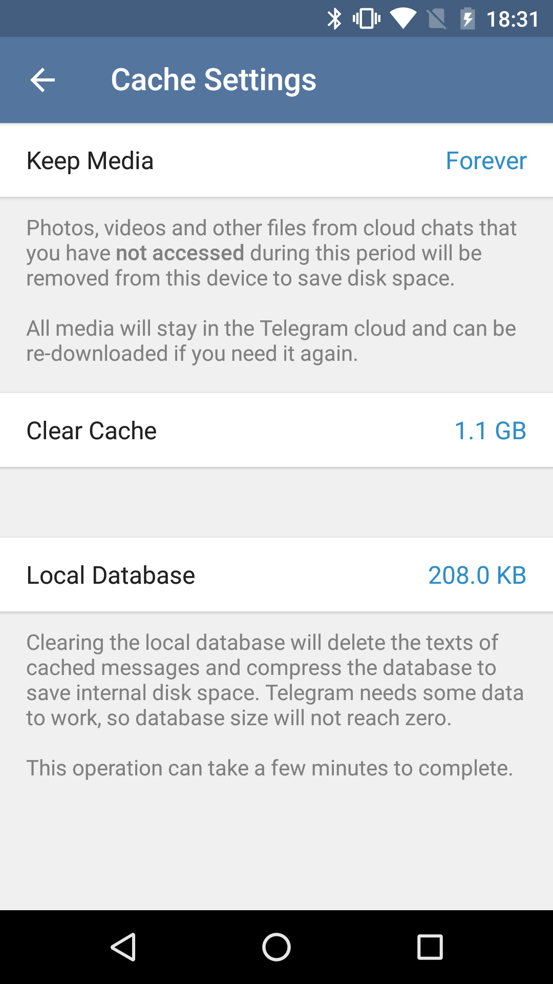 Today we are introducing new cache management options that make it even easier to maintain Telegram’s slender footprint when space is short — without having to sacrifice useful data. The new Clear Cache option allows you to quickly delete cached media by type.