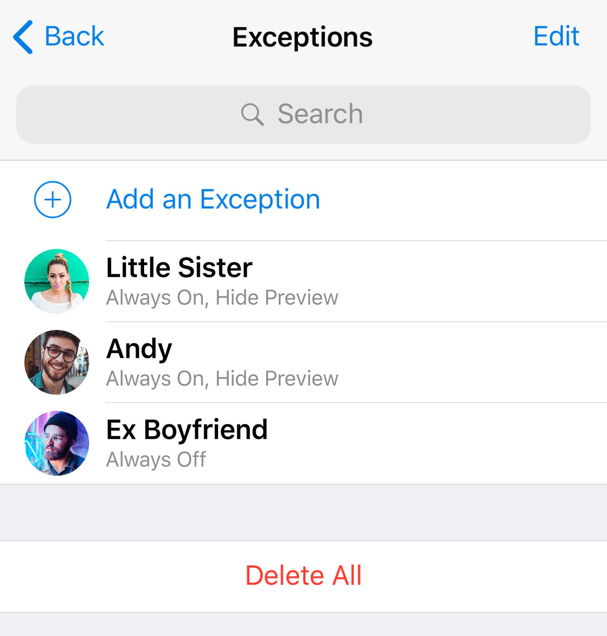 Notification Exceptions just got more powerful. You can now toggle message previews for specific chats. If you have many exceptions, use Search to find the right chat — or ‘Delete All’ to get back to square one instantly.