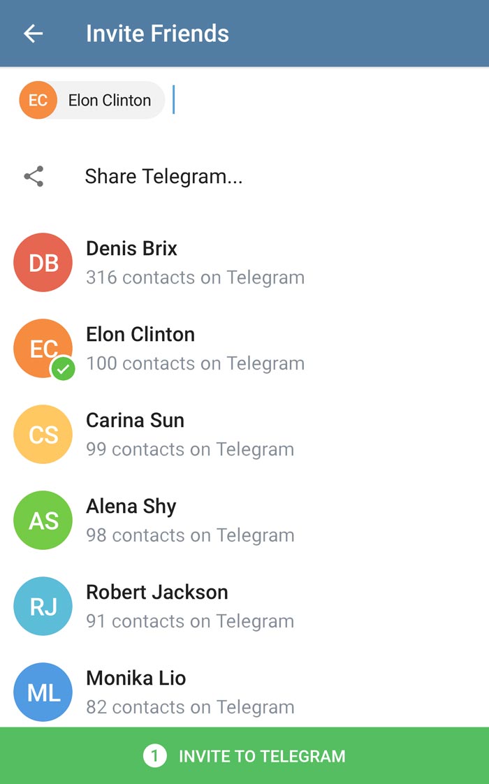 The ‘Invite Friends’ section (accessible from Contacts) has been completely redesigned. Your contacts that are not on Telegram yet but have many of their friends already using it are now listed at the top. If you invite any of them to join, they’ll be welcomed by tens of Telegram veterans among their contacts: