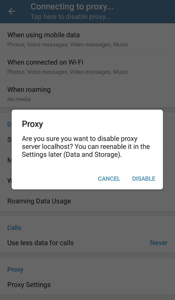Tap here to disable proxy...